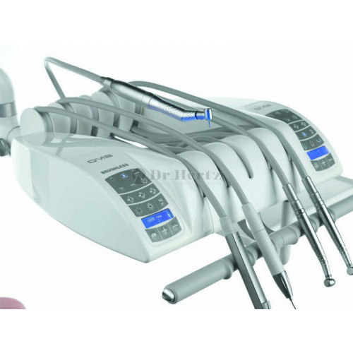 Два аспирационных шланга (слюноотсос, и пылесос) и два свободных держателя для дополнительного инструмента: пистолет вода-воздух,