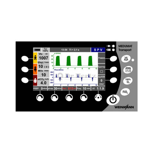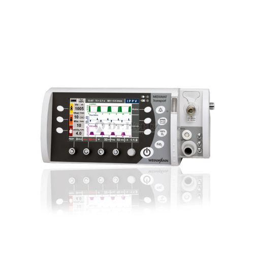 MEDUMAT Transport - является автоматическим кислородным аппаратом искусственной вентиляции лёгких с дополнительной предварительноё оксигенацией и функциями контроля (давление, расход и CO2).